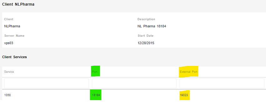 As listed below. Port 19 (External Port) is the latest one. If you can check with the client that they are using an incorrect Hostname you can use and try the 2 below or try which the client is not using.